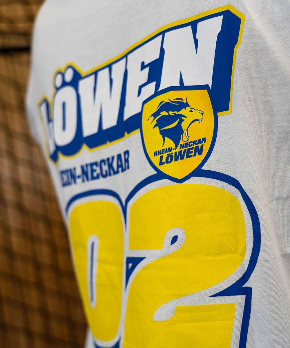 Auf der Vorderseite befindet sich ein dezentes LÖWEN-Logo auf der Brust – perfekt für einen cleanen Look. Die Rückseite setzt ein echtes Statement: Der große „’02“ Varsity-Print, ergänzt durch „Rhein-Neckar“, „Mannheim“ sowie dem Motto „einmal Löwe, immer Löwe“, macht das Shirt zum Hingucker bei jedem Anlass – ob in der Halle, in der Freizeit oder in der Fankurve.