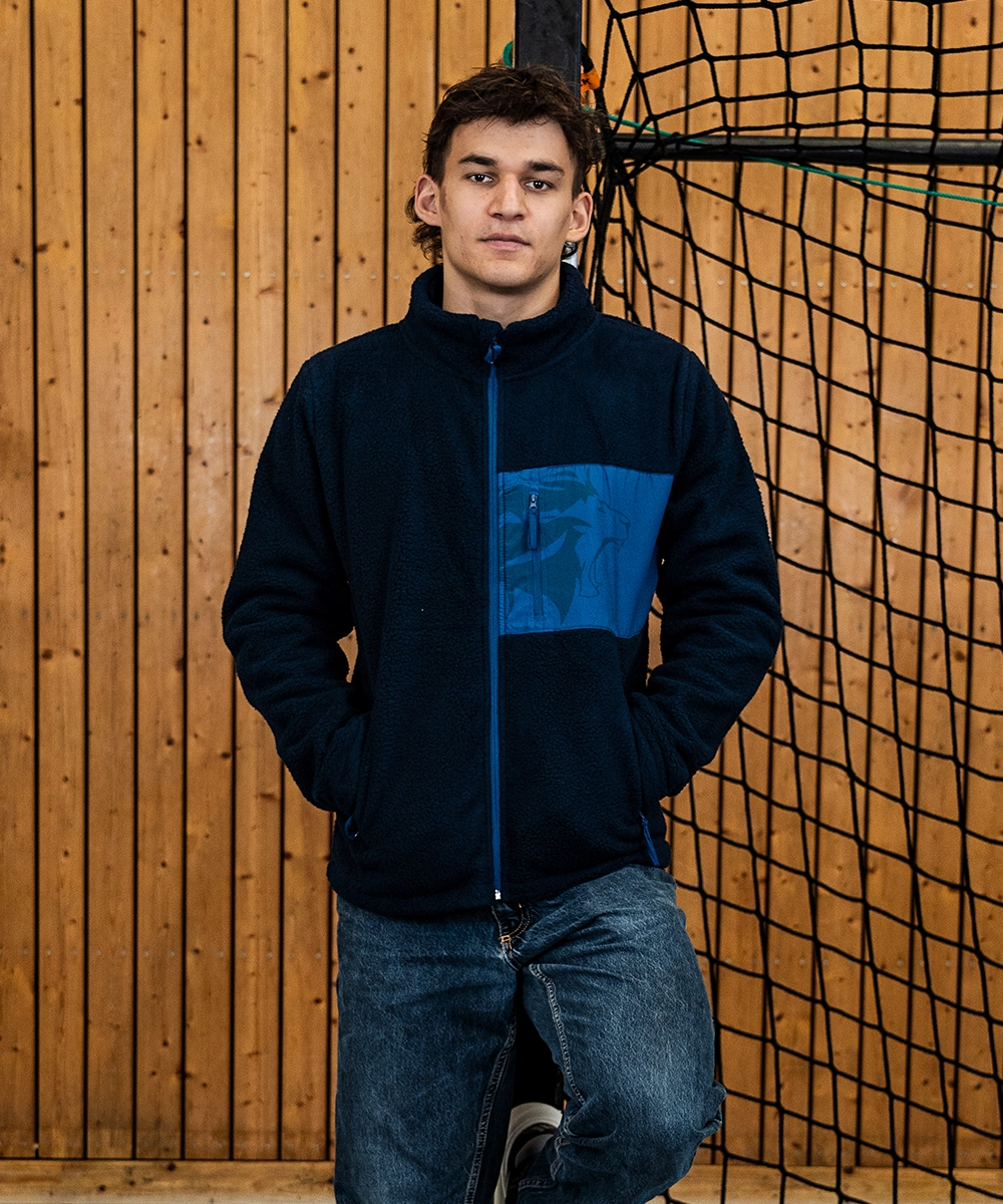 Diese dunkelblaue Fleece-Jacke kombiniert angenehme Wärme mit klarer Löwen-Identität. Der hoch geschnittene Stehkragen schützt zuverlässig vor Wind und Kälte und macht die Jacke zum idealen Begleiter für Training, Spieltage oder den Alltag.