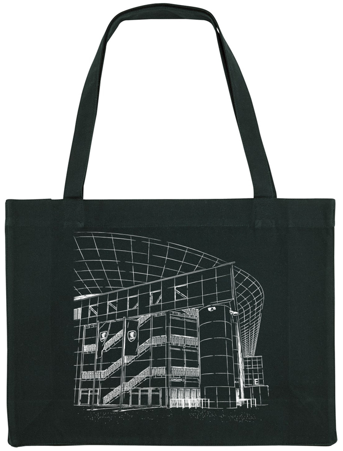 Die andere Seite beeindruckt mit einer künstlerischen Illustration der SAP Arena im coolen, gezeichneten Stil – ein echtes Must-have für alle, die ihre Heimat und ihren Club mit Stolz tragen.
