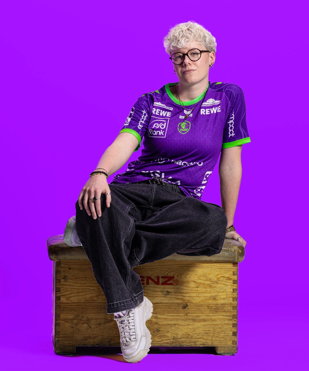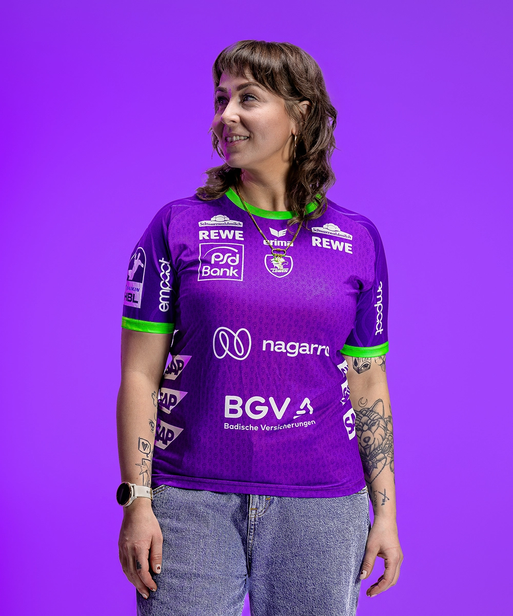 Das leuchtend lila Trikot ist verziert mit einem Mix aus Frauen-Symbol und Löwentatze, um die Löwenpower hinter jeder einzelnen Frau zu symbolisieren.
